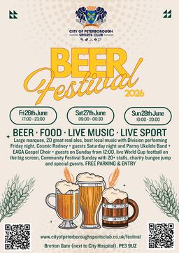 Early notice that from 26th - 28th June 2026, the City of Peterborough Sports Club at Bretton Gate (next to the hospital) will host their annual summer beerfest, with 20+ ales, cider and food.